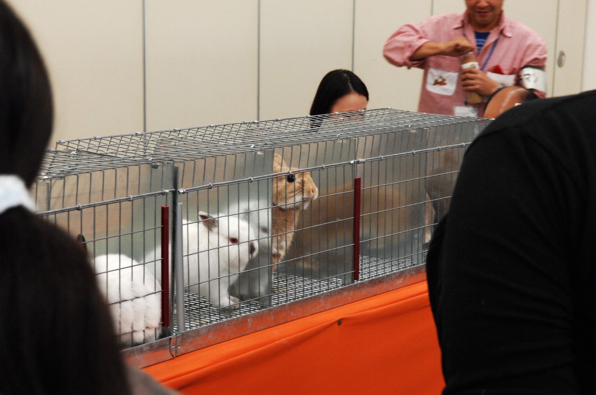 会場には、ブリーダーのうさぎたちがずらり。みんな耳が短くて、どこかアイドルみたいな雰囲気。みるくはその中で、少しだけ不安そうに、でも誇らしげに座っていた。